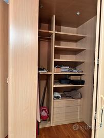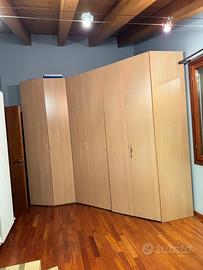 Armadio ad angolo cabina armadio. Faretti interni con accensione all'apertura delle ante. Specchio interno. Misure L. 190 x 280 x h 195 cm. Trasporto e smontaggio a carico dell’acquirente. Si trova al piano primo con scala comoda