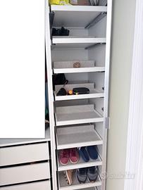 Cabina armadio Ikea Completa 360x60x236+Angolo STRUTTURA CON PREZZI DEL NUOVO 3 moduli da 100+ 1 modulo da 60 + modulo angolare:515 ANTA SPECCHIO PER MODULO DA 60: 75 ACCESSORI: 145 PORTAGIOIE: 105 PORTASCARPE:400 CASSETTIERE :300 TOTALE: 1500 EURO CIRCA Utilizzato poco per 6 mesi ; causa vendita: Trasloco per vendita immobile. Guarda le altre inserzioni trovi altri arredi per la casa: Letto matrimoniale contenitore e materasso, scrivania Librerie mobile da solotto moderno Ikea, armadio, e Armadio Cabina armadio Ikea completo di accessori, tavolino e sedie da Esterno. RITIRO A DOMICILIO A CARICO DELL'ACQUIRENTE, NON SPEDISCO LUOGO DI RITIRO: ROMA: ZONA SANGIOVANNI RE DI ROMA SCONTO QUANTITA' PER CHI VIENE E RITIRA TUTTO