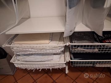 Sistema componibile ikea, indicato per tenere i vestiti esposti e a portata di mano. Ripiani, bastoni appendiabiti, cestelli, binari di montaggio e staffe ti aiutano ad ottimizzare tutto lo spazio, dal pavimento al soffitto. L'armadio è già smontato e pronto per il ritiro. Posso consegnarlo anche a Roma zona Eur-Laurentina