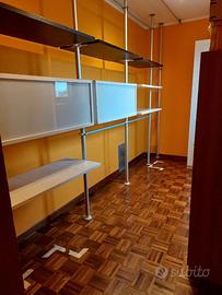 Vendo cabina armadio IKEA Stolmen, composta da cinque pali verticali sei ripiani orizzontale e due compartimenti chiusi con porte vetrate scorrevoli. Ottimo stato di conservazione
