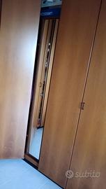 Vendo cabina armadio a soffitto e ad angolo retto in noce della Monteni con ante scorrevoli a soffietto. Dotato di cassettiera, ripiani e specchio interno. Misure: lunghezza dei due lati mt 2,25, larghezza 0,64 e altezza 2,66. Smontaggio e ritiro a carico dell'acquirente.