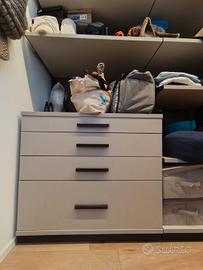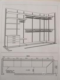 vendo cabina armadio, ripiani, appendi abiti ( lunghi e corti ), cassettiera. Misure come da foto del progetto