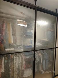 vendo cabina armadio con 4 ante scorrevoli e interno modulabile per causa trasloco le ante misurano 1mtx2.5 l una la lunghezza totale e 4 mt e altezza compreso il binario dove scorrono le ante e alto 2.60 MT trasporto a carico dell acquirente