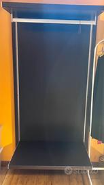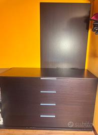 Composta da 3 moduli larghezza 76 altezza 1,80, nr 4 ripiani ,nr 3 appendiabiti, nr 1 cassetteria (4 cassetti ) lunghezza 1,25 x h 0,75 profondità 0,50, nr 1 cassettiera ( 4 cassetti) lunghezza 0,76x h 0,75 profondità 0,50.