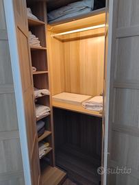 cabina armadio, solo montata . 14 ante, illuminata, pantoloniera cassettiere varie, angolo destro e sinistro . come nuova