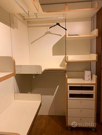 Cabina armadio, arreda 3 pareti m.xm3,5, praticamente nuova con scaffali e cassettiere come da foto, elemento per pantaloni uomo.