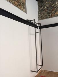 8 metri di binario lineare e 5 carrelli composti da due mensole e due appendiabiti, dimensioni dei carrelli altezza 2 metri larghezza 60 centimetri e profondità 50 centimetri