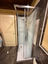 Cabina doccia multi funzione HAFRO cm 100X70 h211 completa di colonna ad angolo, asta doccia 3 jets idromassaggio compreso piatto in acrilico h.8 finitura cromata e termostatico doccia completo di asta saliscendi. Usata un mese - già smontata e imballata. Vendo per errato acquisto. Ritiro in loco.