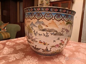 cachepot cinese anni '70 dipinto a mano diam. 41 cm alto 33 perfetto