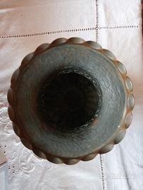 Bel cachepot (contenitore per vasi) in rame sbalzato probabilmente realizzato da Egidio Casagrande negli anni '50. È stato ampiamente utilizzato in passato; motivo per cui presenta delle parti ossidate alla base, che però, secondo il mio gusto, possono solo aggiungere charme e fascino all'oggetto