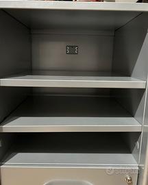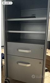 Mobile “caddy” professionale con 4 ruote piroettanti indipendenti Scocca in lamiera verniciata grigio argento Ideale per home-office & smartworking (porta laptop, porta stampante) -Vano a giorno con 02 ripiani, rimovibili -Cassetto con serratura a chiave -Anta con serratura a chiave -Foro passacavi nella schiena Ingombro 50cm x 50cm x H 120cm No spedizione, solo ritiro.