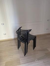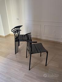 Sedia Cafè Chair Baleri Italia: una sedia disegnata dal più famoso designer francese per il più famoso caffè francese: il “Café Costes” di Parigi. Sedia con la struttura in tubo di acciaio verniciato con polveri epossidiche in argento metallizzato lucido. Sedile realizzato in lasten: cinghie in lattice di gomma e polipropilene nero.