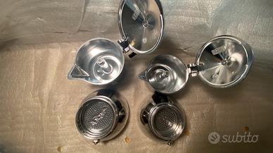 N.B: Set di due caffettiere bialetti fiammetta originali da 2 e 4 tazze , nuove, mai usate , senza la confezione originale ,sostituiti i due manici. Marchio Bialetti Capacità : 2 e 4 tazze Colore :nero Caratteristica speciale Portatile Tipo di caffettiera Moka La Caffettiera Fiammetta Bialetti è disponibile anche ad induzione per offrirti un caffè di qualità anche sul tuo piano cottura ad induzione. Bialetti fiammetta colore nero per una pausa caffè fatta con stile. Prodotto di alta qualità grazie alla brevettata valvola di sicurezza Bialetti e l’esclusiva caldaia Bi-Layer. Il doppio strato della caldaia, infatti, garantisce la preparazione del caffè secondo la migliore tradizione italiana e consenta un uniforme distribuzione del calore per un perfetto utilizzo su tutti i piani cottura ad induzione. Come preparare il caffè: riempire con acqua la caldaia fino alla valvola di sicurezza, inserire l’imbuto e aggiungere il caffè macinato per Moka senza pressare, chiudere la moka e posizionarla sul piano cottura. Attendere la fine dell’erogazione all’interno del raccoglitore, spegnere il fuoco e infine godetevi un buon caffè! Le dimensioni della Fiammetta Induction si misurano in Tazzine, il caffè può essere gustato in Tazzine Espresso o in tazze più grandi in base alle proprie esigenze. Fiammetta due caffettierevnel formato da 2 tazze (100ml) e da 4 tazze (150ml). Istruzioni per la pulizia: Fiammetta Bialetti deve essere pulita solo con acqua dopo l'uso. Non usare detergenti. Il prodotto non deve essere lavato in lavastoviglie poiché questo potrebbe causare il danneggiamento del prodotto e quindi alterare il gusto del caffè.