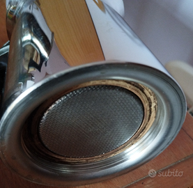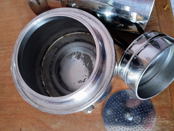 Acciaio inox 18/10 marca gb (Guido Bergna, marchio acquisito dalla Bialetti nel 2001). Altezza cm 19 circa, diametro inferiore cm 10. Fornita con riduttore. Guarnizione da sostituire