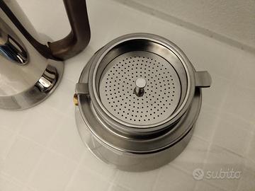 Caffettiera in acciaio inox 18/10 lucido - con beccuccio anti goccia - riduttore per filtro - chiusura -apertura a baionetta - Designer Richard Sapper per Alessi - altezza cm 20,5 - mai usata - senza scatola