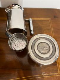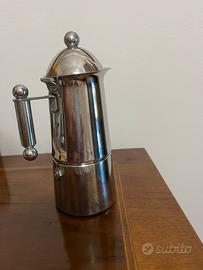 Caffettiera espresso TRACANZAN ALFA 2/3 Tazze Vintage Anni ‘60-‘70. Linea elegante e moderna in acciaio inox 18/10 tutta di colore argento, manico e pomolo compresi. Diametro base: 6,2 cm