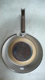 Caffettiera 6 tazze ancora nuova in quanto mai utilizzata. Descrizione: la 9090 è la prima caffettiera espresso della storia di Alessi, ma anche il primo di numerosi premi Compasso d’Oro e il primo oggetto Alessi esposto al MOMA di New York. “Volevo dare a questa macchina delle prestazioni che le altre non hanno”. Con queste parole Richard Sapper ha descritto l'idea dalla quale è partito. La 9090 è originale non soltanto per la sua forma particolare, ma anche per alcune innovazioni funzionali, come la base allargata che permette di sfruttare al massimo il calore, il beccuccio antigoccia e la chiusura a leva che consente di aprirla con un semplice gesto della mano. NB: non è presente la confezione.