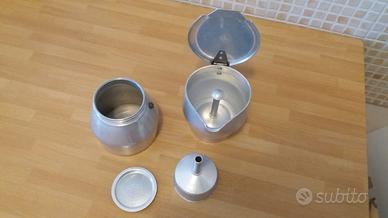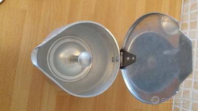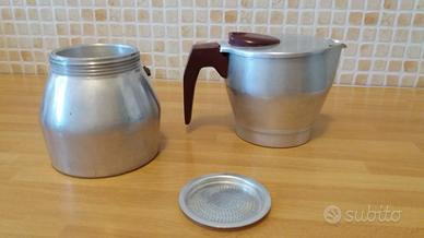 CAFFETTIERA ANNI 50 LUXA EXPRESS GUIDO BERGNA ALLUMINIO - 6 TAZZE. Caffettiera vintage da 6 tazze prodotta negli anni 50 da Guido Bergna - marcata Luxa Express - Made in Italy - realizzata interamente in alluminio con impugnatura e pomolo in bachelite bordeaux. Usata ma ancora in buone condizioni. Misure: Altezza al pomolo cm 18. Diametro alla base cm 9. Pesa 560 Gr. Consegno su Parma No spedizione