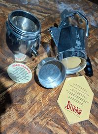 Caffettiera Bialetti modello Brikka 2 tazze in alluminio, vintage nuova con la confezione originale.