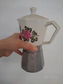 Antica caffettiera d'arredo in ceramica dipinta a mano con rose.