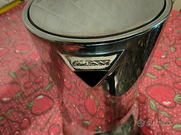 Caffettiera vintage di design Alessi 9090 originale. 6 tazze. Linea elegante e pulita. Bella anche dopo decenni. Usata ma in buone condizioni. Sulla parte inferiore della caldaia, segni di ossidazione da fiamma, la parte superiore è perfetta.