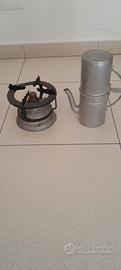 caffettiera e fornello vintag in alluminio