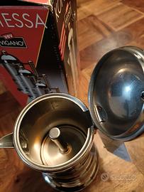 Bellissima caffettiera Vev Viganò , pomello e manico oro 4 tz , com confezione originale e cartellino, presente anche una guarnizione di ricambio . Adatta a tutti i piani di cottura , gas , elettrico, vetroceramica e induzione .
