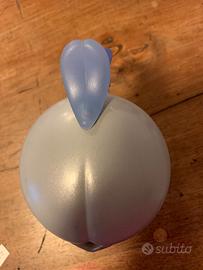 Caffettiera Mepra modello Caramella colore grigio con manico e pomolo colore azzurro.