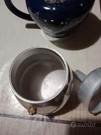 Caffettiera Moka baci perugina vintage in ceramica e acciaio, e due tazzine con scritte ,da collezione,Nuove vedi foto mai usati, manca la scatola sono ancora nel suo imballo