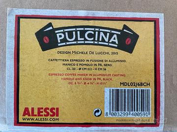 Vendo caffettiera nuova Alessi Pulcina 6 tazze, manico nero, per fornelli a gas (no induzione)