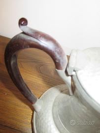 Caffettiera in peltro di provenienza britannica (Sheffield) come da foto, dei primi del '900. Oggetto esclusivamente ornamentale di eccellente manifattura. Per intenditori e amanti dell'oggettistica inglese. Altezza cm 18.