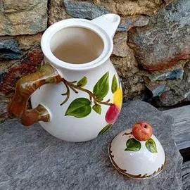 Caffettiera/teiera Villeroy Boch, Mettlach. Serie e decoro "Ma Pomme " non più in produzione . Decorata a mano con parti in rilievo.