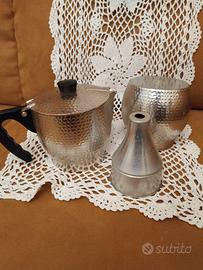 Per gli amanti del caffè e degli oggetti d'epoca, propongo questa elegante caffettiera Luxa Express, autentica produzione italiana. Realizzata in alluminio martellato, presenta un design unico che unisce stile e funzionalità. Ideale per collezionisti o per chi desidera arricchire la propria cucina con un oggetto intramontabile. È un pezzo che racconta la storia del caffè italiano, simbolo di convivialità e tradizione.