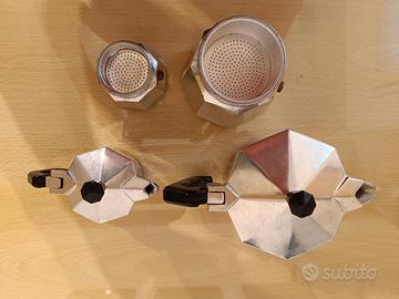 Vendo caffettiere Bialetti Moka Express originali in alluminio, entrambe in condizioni pari al nuovo. 🔹 Bialetti Moka Express 6 tazze usata pochissimo pulita e perfettamente funzionante incluse 2 guarnizioni nuove di ricambio 💰 Prezzo: 18 € 🔹 Bialetti Moka Express 2 tazze usata pochissimo, pulita e perfettamente funzionante 💰 Prezzo: 12 € 👉 Vendibili anche separatamente 👉 Sconto per acquisto in blocco: 25 €
