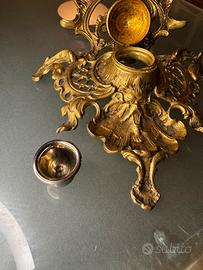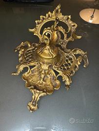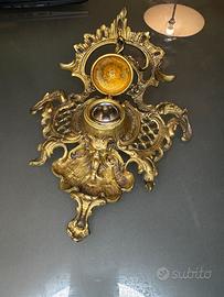 Questo pregevole calamaio da scrittoio rappresenta una sintesi emblematica delle arti applicate europee tra la fine del XIX e l'inizio del XX secolo. Realizzato in ottone e successivamente rifinito con una doratura galvanica, l'oggetto incarna il passaggio dal revivalismo neobarocco alle linee sinuose del Liberty (Art Nouveau). L'opera si distingue per un’articolazione plastica complessa e dinamica, dove la funzione viene quasi celata dall'esuberanza ornamentale: • Morfologia Organica: La base è concepita come una struttura libera e asimmetrica che ricorda lo sviluppo di una conchiglia o di un fogliame accartocciato. Le linee "a colpo di frusta", tipiche del Liberty, guidano l'occhio lungo volute aperte e trafori a graticcio. • Elementi Antropomorfi e Grotteschi: Al centro della composizione, in posizione frontale, emerge un mascherone dai tratti marcati, elemento di derivazione manierista ma reinterpretato con la sensibilità simbolista dell'epoca. • Il Calamaio: Il ricettacolo centrale è sormontato da un coperchio a cupolina incernierato, che rivela un invaso interno (originariamente destinato a ospitare un contenitore estraibile in vetro o ceramica per l'inchiostro). La parte anteriore digrada in un ampio bacino concavo, sapientemente modellato per fungere da poggianibbi o vassoio porta-penne. • Patina e Lavorazione: La finitura alterna zone brunite e zone lucide, accentuando il chiaroscuro e conferendo profondità alla decorazione cesellata. Acquisire un oggetto come questo non significa semplicemente acquistare un accessorio d'arredo, ma preservare un frammento di un'era in cui la comunicazione era un'arte lenta e meditata. Chiedi pure informazioni e foto extra sono a completa disposizione. ☺️ Spedizione veloce, imballo curato ♻️ calamaio encrier tintenfass ottone bronzoantico liberty artnouveau jugendstil stileliberty