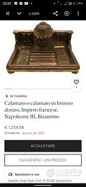 Raffinato calamaio bizantino francese del XIX secolo, periodo Impero di Napoleone III, in bronzo dorato con antica salvietta assorbente.con timbro sul retro (vedi foto). Ritiro a Miane (Treviso).3519972509!