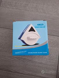 Calamita triangolare per pulizia dei vetri. Compresi cordicella anticaduta e panni di ricambio