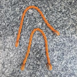 2 fermatenda magnetici resistenti in cotone intrecciato a mano. Colore: arancione. Dimensioni allungate: lunghezza totale 40 cm; altezza cotone intrecciato 1 cm; diametro magnete 2 cm. Si possono attorcigliare per regolare la lunghezza.