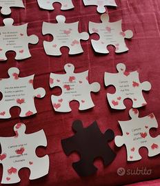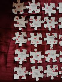 Vendo in blocco n.30 calamite puzzle con frasi. Sono avanzate dal mio matrimonio. Ottima idea per bomboniera o segnaposto no spedizione.