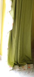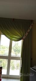 vendo due calate per tende di colore verde con fiori in tessuto realizzati a mano sia sulla calata che sulla fascia laterale per raccoglierla