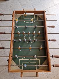 Il gioco è completo di tutte le aste, manopole in legno e giocatori in metallo. Il campo da gioco in legno ha una vernice originale, consumata e segnata dal tempo, che gli conferisce un fascino unico e autentico