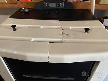 Ha solo, eventualmente la si metta in bella vista, il piatto superiore in maiolica da sostituire se là si vuole perfetta, non compromette la funzionalità della caldaia a Pellet ovviamente, è una questione estetica. È comunque attaccata tra le parti con una rete termica sotto al piatto.