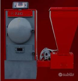 Vendo caldaia FACI policombustibile con tramoggia, ideale per il riscaldamento domestico o industriale, perfetta per pellet, cippato, sansa, gusci di mandorle, legna e altri materiali solidi. Struttura robusta in acciaio ad alto rendimento, con bruciatore a doppia coclea per massima sicurezza (sistema anti-ritorno di fiamma) e alta efficienza di combustione. Camera di combustione orizzontale a sviluppo tubolare per un eccellente scambio termico e risparmio energetico. Dotata di pannello di controllo digitale.