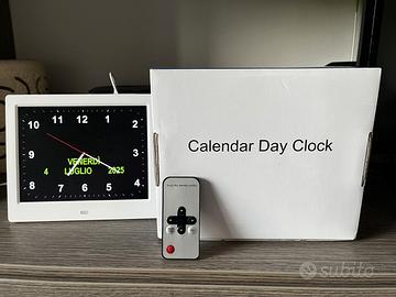 Calendar Day Clock. Orologio digitale con calendario integrato, pensato soprattutto per persone anziane o con difficoltà cognitive (ad esempio Alzheimer o demenza), perchè il display grande e chiaro mostra bene la data e il momento della giornata (Mattina, Pomeriggio, Sera).