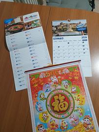 Bellissimo calendario, ripiegabile, in plastica e carta, con logo pubblicitario di un ristorante cinese, mis 76×32. + 2 calendari con loghi di supermercati.