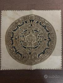 Bellissimo oggetto decorativo che riproduce il celebre Calendario Azteco (Pietra del Sole), finemente inciso su vera pelle. Lavorazione artigianale con dettagli curati che valorizzano la simbologia ancestrale azteca. Perfetto come elemento d'arredo, da appendere o esporre, oppure come idea regalo originale per appassionati di cultura e storia precolombiana.