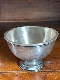 Calice antico in metallo Wiskemann Svizzero con dicitura “Al vino del Chianti “z. Misure 13x8 cm e 340 grammmi.