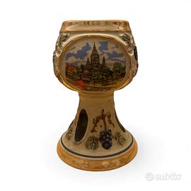 Un calice/boccale decorativo da vino vintage in ceramica di München della Germania Ovest con un'illustrazione del Duomo di Magonza (Mainz Dom).