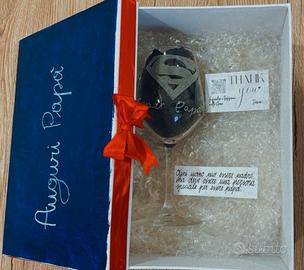 Vendo elegante calice da vino inciso personalizzabile, perfetto come regalo per la Festa del Papà.
