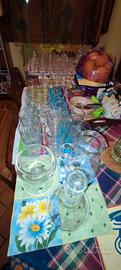 Si vende quanto segue in blocco e in Buono stato.: N. 11 Calici vino Bassi. N. 8 Calici Vino N. 7 Calici vino con bordo N. 5 Flute stretti N. 4 Fllute larghi N. 9 Bicchieri Acqua Alti E 1 Canter Vino, 1 Caraffa, 1 portacandele.